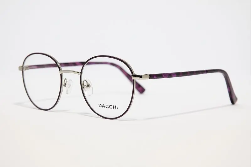 Découvrez la lunette de vue Dacchi femme, élégante et raffinée, en métal ovale mauve. Disponible chez Luxe Optique Dakar VDN.
